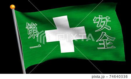 金属レリーフ調の緑十字旗_safety-flag-metal10