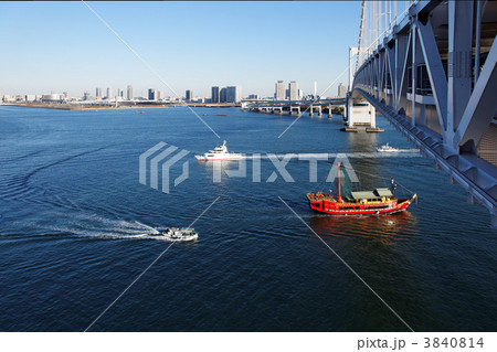 遊覧中の御座船安宅丸とレインボーブリッジ