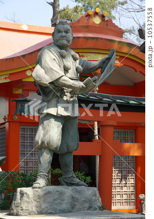 石川 安宅住吉神社 稲荷社と勧進帳を読む弁慶像