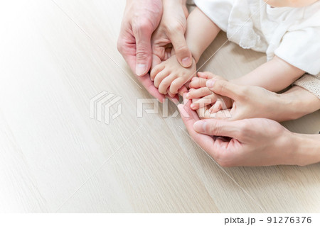 手を取り合う赤ちゃんと家族 ファミリーイメージ