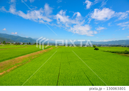 水田と青空と街並み【安曇野市】