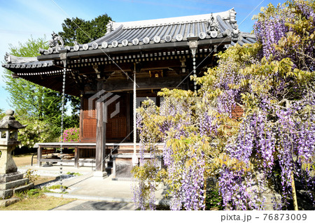 フジの花が咲く子安地蔵寺本堂 (和歌山橋本市菖蒲谷)