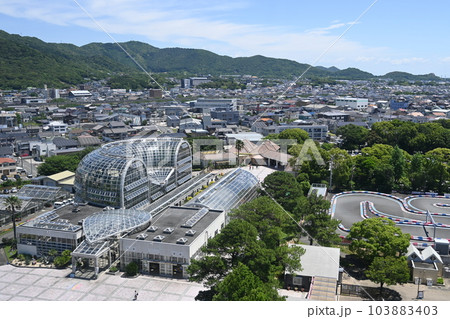 のんほいパーク(豊橋総合動植物公園)の展望塔から見た温室