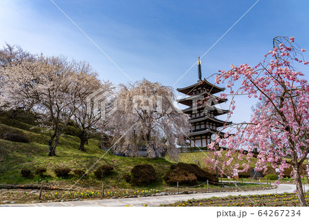 福島県二本松市 春の安達ヶ原ふるさと村 五重塔