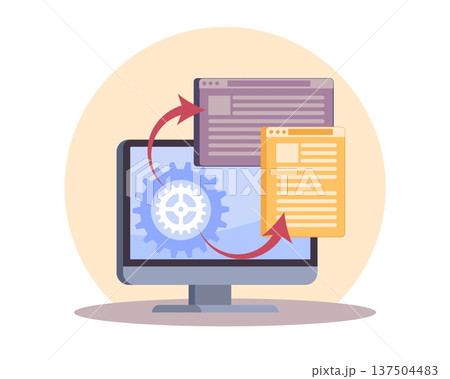 Dynamic action protocol. Workflow software, complete system development and integration, automatic data entry, data transfer, file sharing, information management vector cartoon flat concept