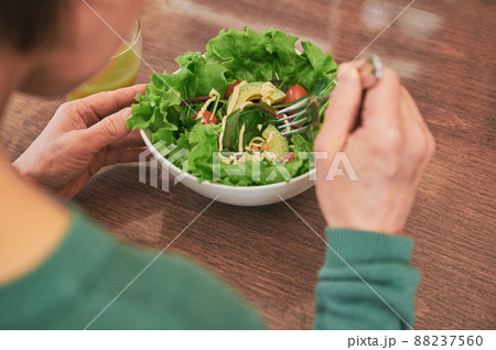 サラダを食べるシニア女性 ヴィーガン ベジタリアン