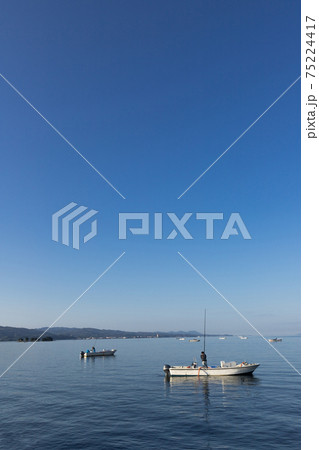 早朝の宍道湖としじみ漁の風景 島根県松江市