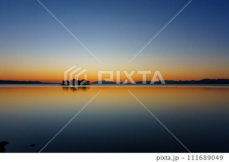 宍道湖の夕焼けと嫁ヶ島と袖師地蔵の風景 島根県松江市