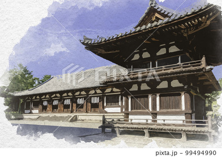 水彩画風 唐招提寺 講堂 奈良県奈良市