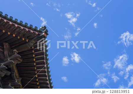 藍天白雲下的中國古建築飛簷