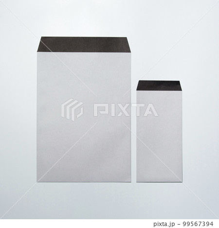グレーでフタが黒い無地の封筒|サンプル・モックアップ