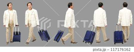 キャリーバッグシニア男性の全身人物切り抜き素材