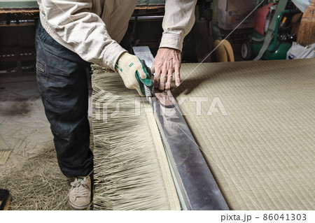 畳の表替え作業 裁断