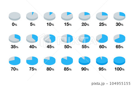 アイソメトリックで描いた円グラフセット 0%~100%まで