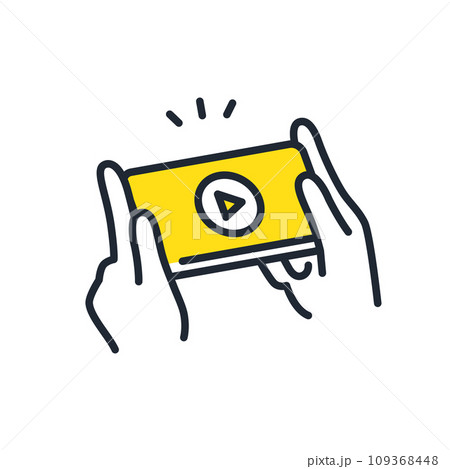 スマートフォンで動画コンテンツを視聴するシンプルなベクターアイコンイラスト素材