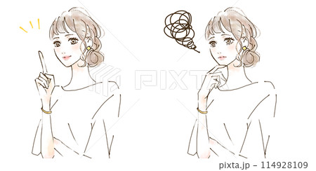 女性のイラストセット 悩みと解決 before after シンプル