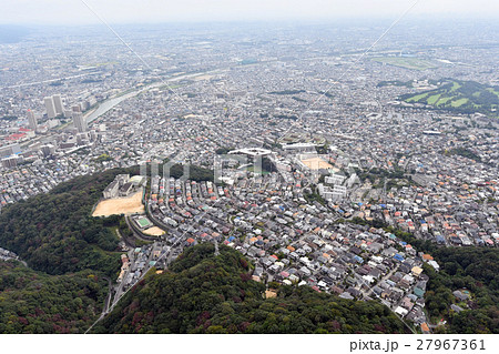 山間部から見た宝塚市の住宅地と西宮市の甲山