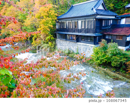 群馬県水上町 宝川温泉の温泉旅館と紅葉