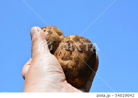 初めての収穫、ジャガイモ、家庭菜園、畑、イメージ素材