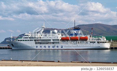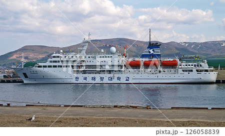 佐世保港の大桟橋に停泊する韓国海洋大学校実習船のハンナラ