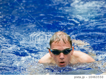 Swimmer performing butterfly stroke in professional pool with strong determination