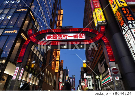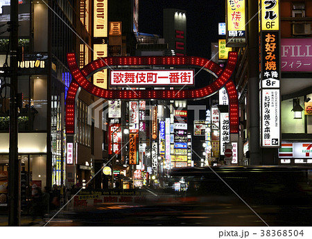 日本の東京都市景観・歌舞伎町一番街の夜景