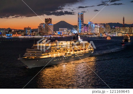 《神奈川県》横浜の夜景と出港する豪華客船・富士山も一望