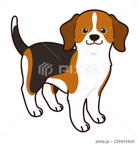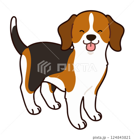 立ち姿のシンプルで可愛い笑顔のビーグルのイラスト 主線あり