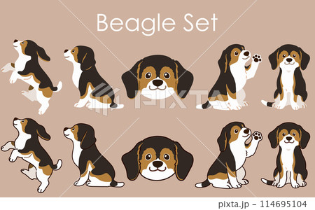 シンプルで可愛いビーグルのイラストセット 主線あり・なし