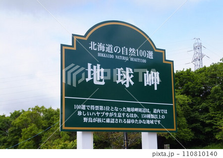 室蘭市にある地球岬の展望台の周辺にある地球岬の案内看板