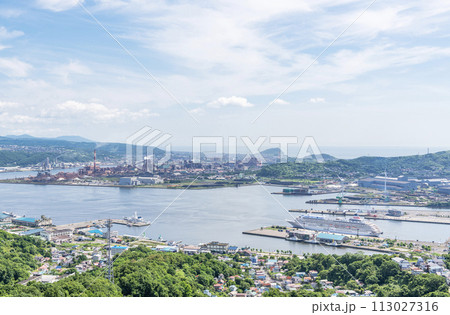 北海道室蘭市 夏の北海道 高台から望む夏の室蘭の街並み(室蘭港周辺)