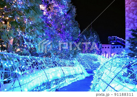 冬の教会のイルミネーション