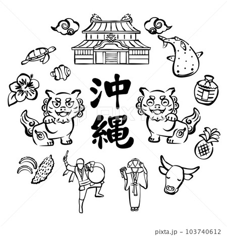 沖縄 手描きのイラストセット