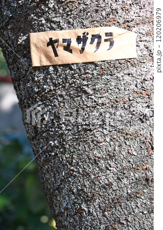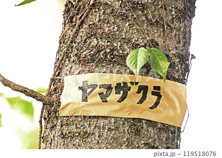 剪定準備のテーピングがされた山桜
