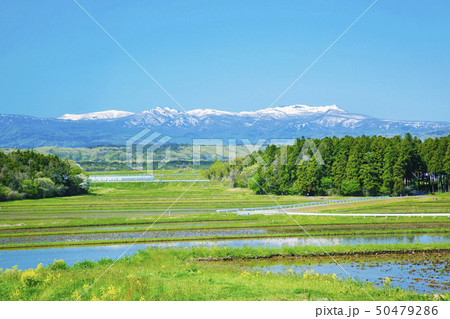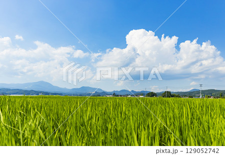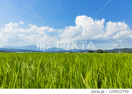 夏の水田と泉ヶ岳
