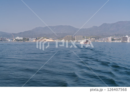瀬戸内海 を 宮島口 と 宮島 ( 厳島 )を結ぶ フェリー 航路【 広島 の 風景 】