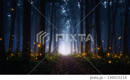 森林中的螢火蟲飛舞不停,夜晚時分好不熱鬧。