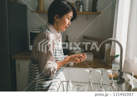台所仕事で手荒れする主婦