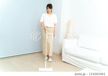 モップがけをする女性