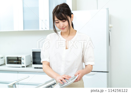 洗い物をする女性