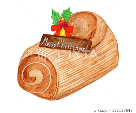 水彩手描きのクリスマスケーキ・ブッシュドノエルのイラスト素材
