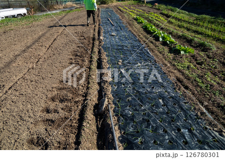 玉葱苗植え作業風景
