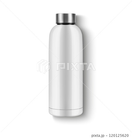Vector Realistic 3D Blank Glossy Reusable Water Bottle with Steel Bung Closeup Isolated. Design Template of Packaging Mockup. Front View