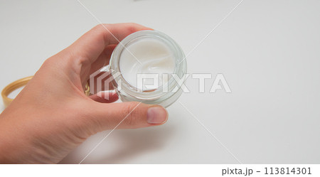 Skincare jar with cosmetic anti aging cream .cream and hold it