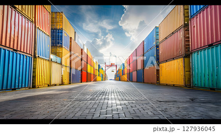 Multi-colored cargo containers on the pier of a cargo logistics port. AI Generated