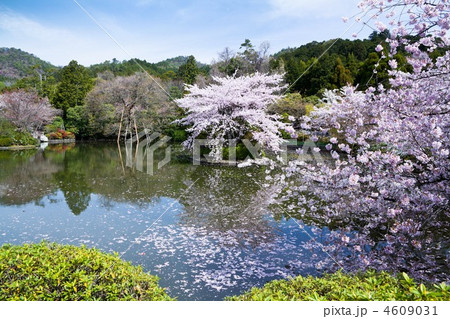 京都、龍安鏡容池の桜