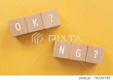 OK、NG|「OK NG」と書かれた積み木と人型のオブジェ