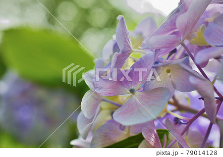 あじさい山の紫陽花とカタツムリの赤ちゃん