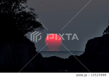 だるま夕日 宿毛湾 (高知県 宿毛市 田ノ浦地区の海岸線より)