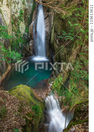 【日本の滝百選】晩秋の寂地峡五龍の滝 龍頭の滝と龍門の滝の上部1 山口県岩国市